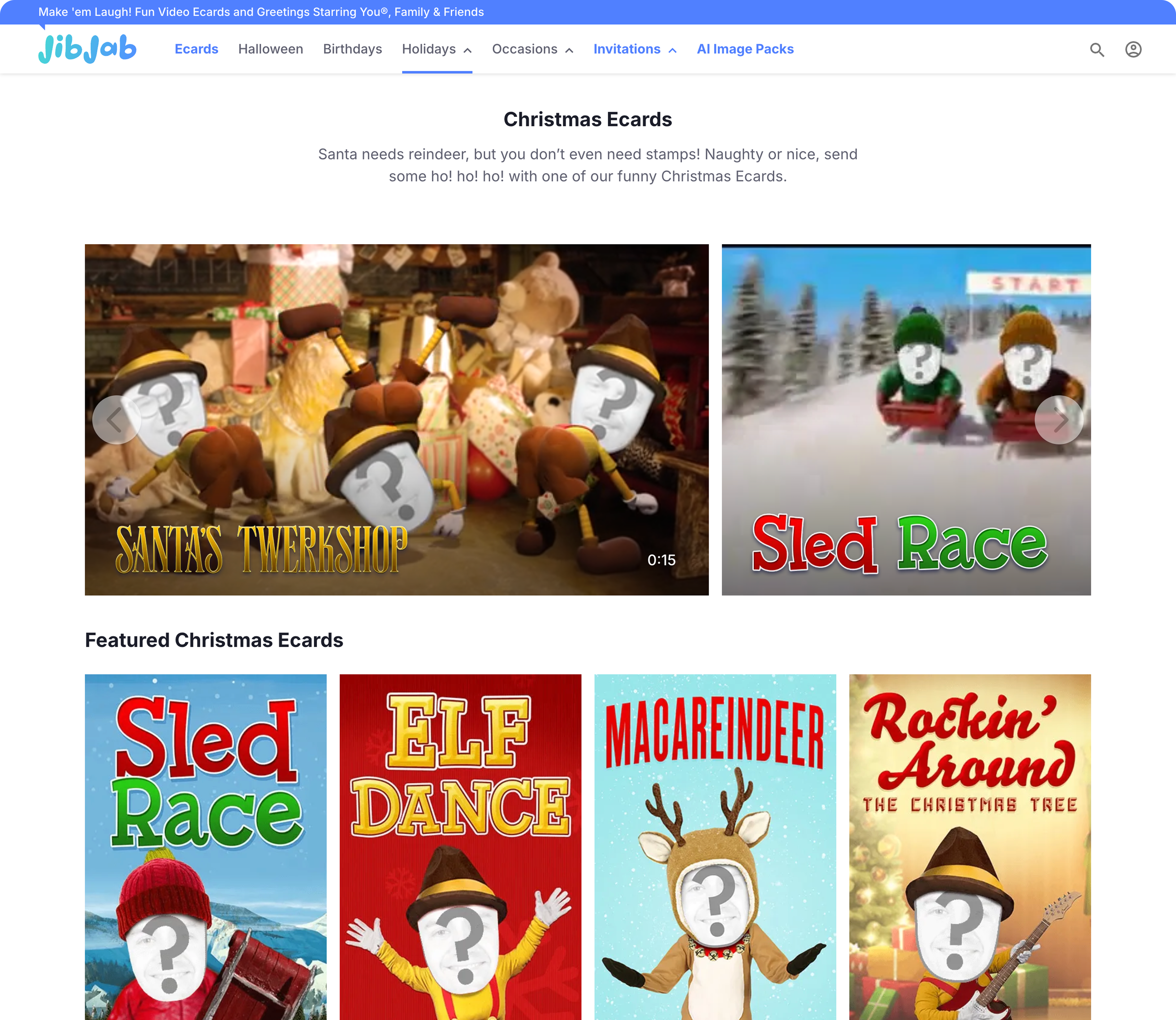 In late 2024, I led JibJab’s first major web refresh in years. My role centered on expanding the existing design system, redesigning core pages, and creating reusable components that could be used across holidays, promotions, and future features.