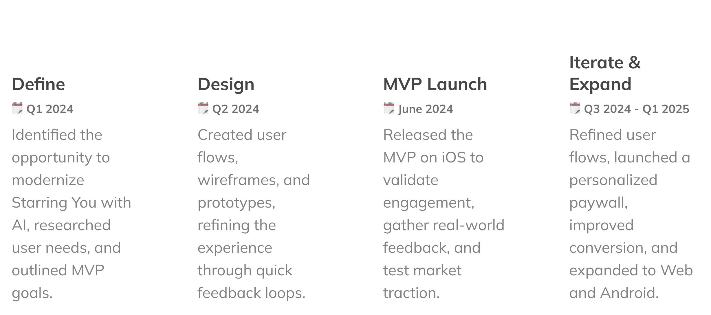 Under a tight deadline, we focused our MVP on iOS — where most of our paying subscribers were. This gave us the best chance to gain traction quickly and validate the concept early.